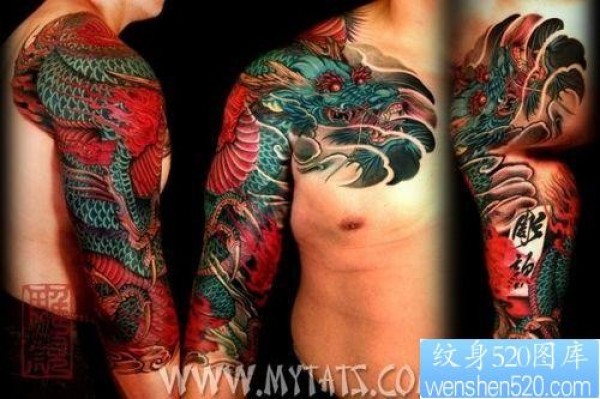 半胛龙纹身图片彩色半胛花臂龙纹身图片纹身_花臂纹身图案大全_纹身图吧
