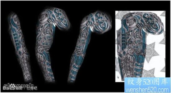 超帅很酷的半甲机械花臂纹身手稿_花臂纹身图案大全_纹身图吧