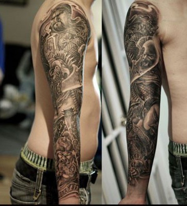 男生手臂经典超帅的关公花臂纹身图片_花臂纹身图案大全_纹身图吧