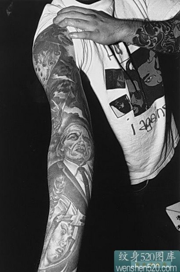 漂亮的黑白色花臂肖像纹身图_花臂纹身图案大全_纹身图吧