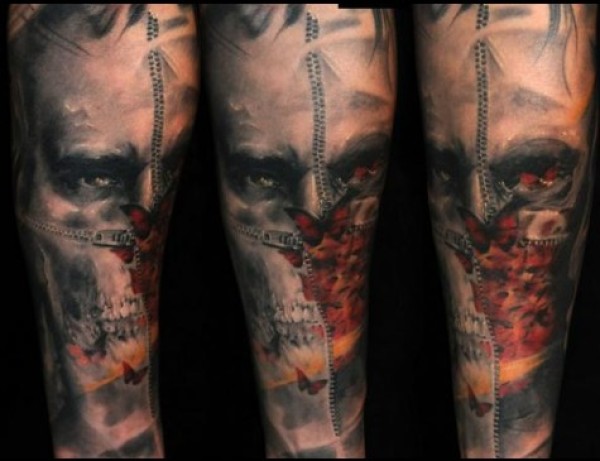 骷髅与派大星小花臂纹身图案图片_花臂纹身图案大全_纹身图吧