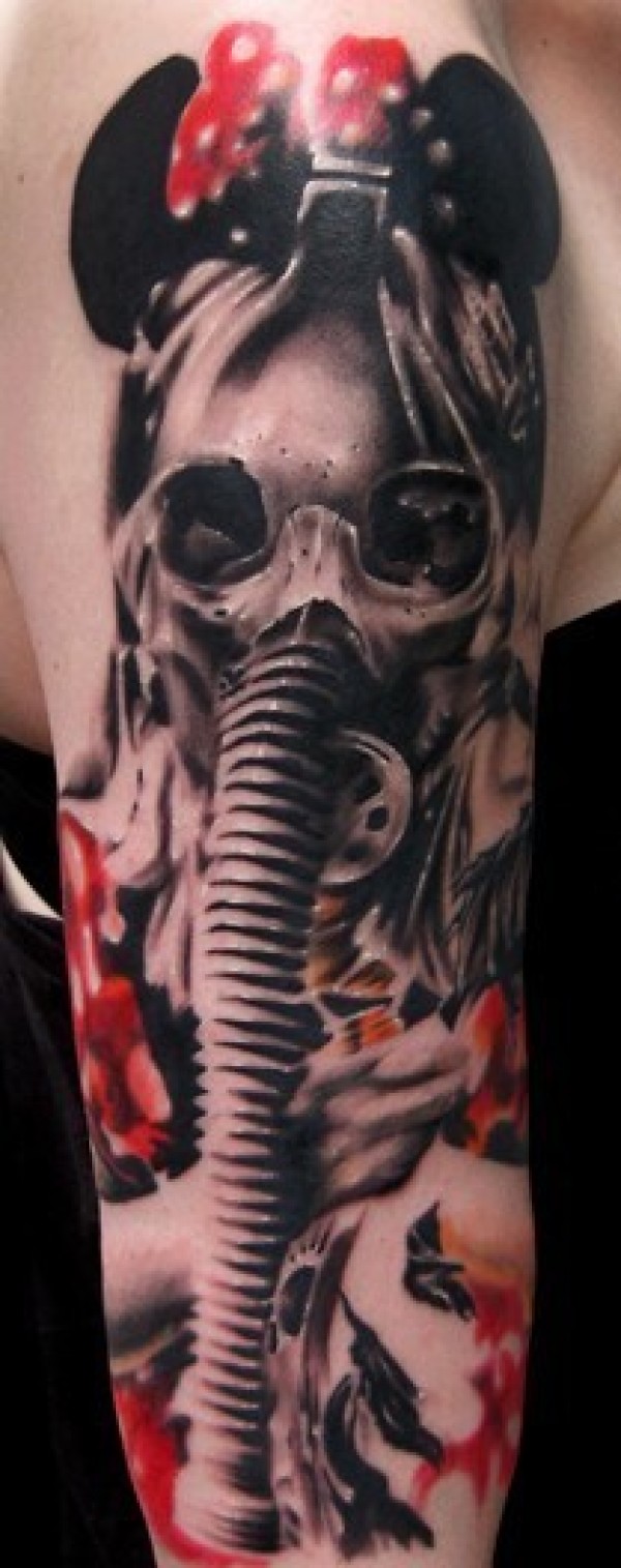 女士手臂上霸气的机械花臂纹身_花臂纹身图案大全_纹身图吧