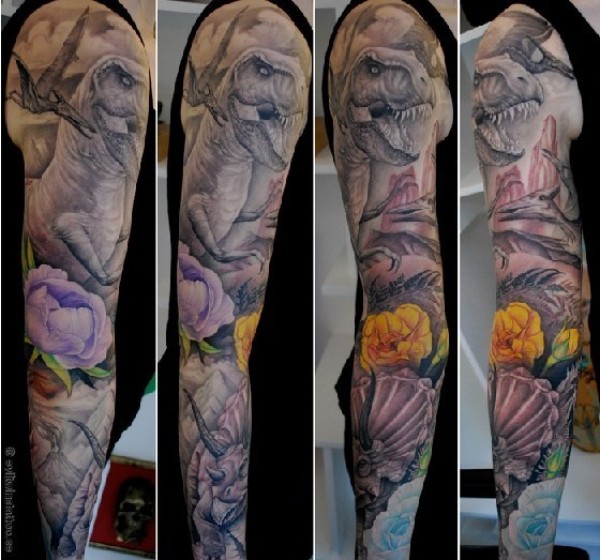 恐龙花臂纹身图案_花臂纹身图案大全_纹身图吧