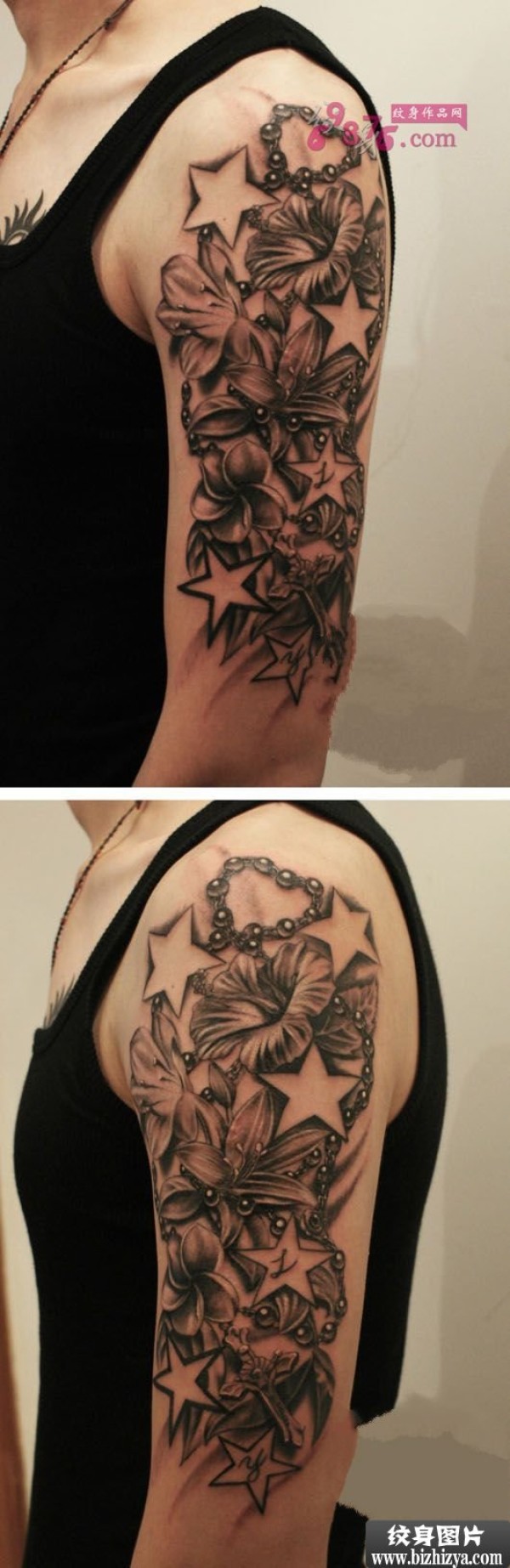 水墨小花臂玫瑰纹身图案图片_花臂纹身图案大全_纹身图吧