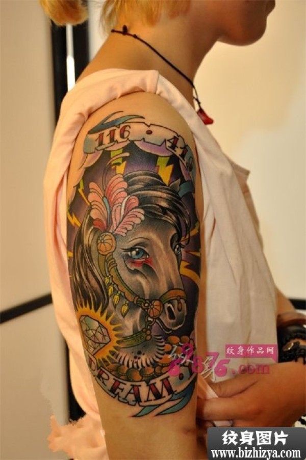 创意马姑娘花臂纹身图案图片_花臂纹身图案大全_纹身图吧