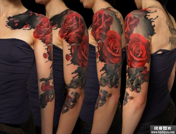 红色玫瑰花花臂纹身图片图案图片_花臂纹身图案大全_纹身图吧