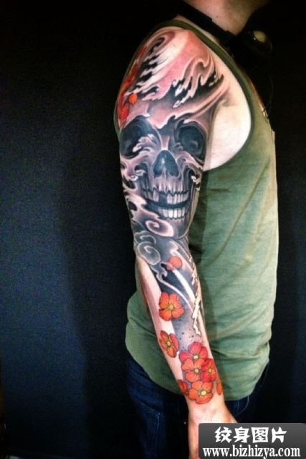欧美骷髅花臂纹身图图案图片_花臂纹身图案大全_纹身图吧