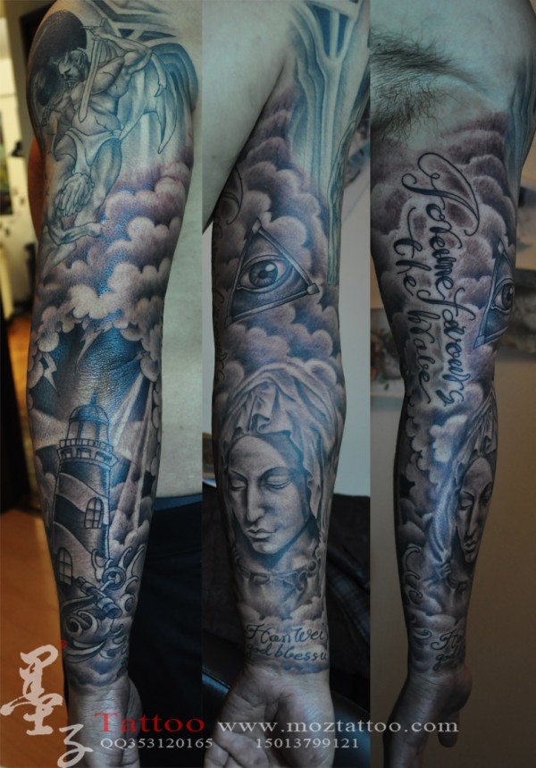 欧美花臂 天使魔鬼 圣母 纹身_花臂纹身图案大全_纹身图吧