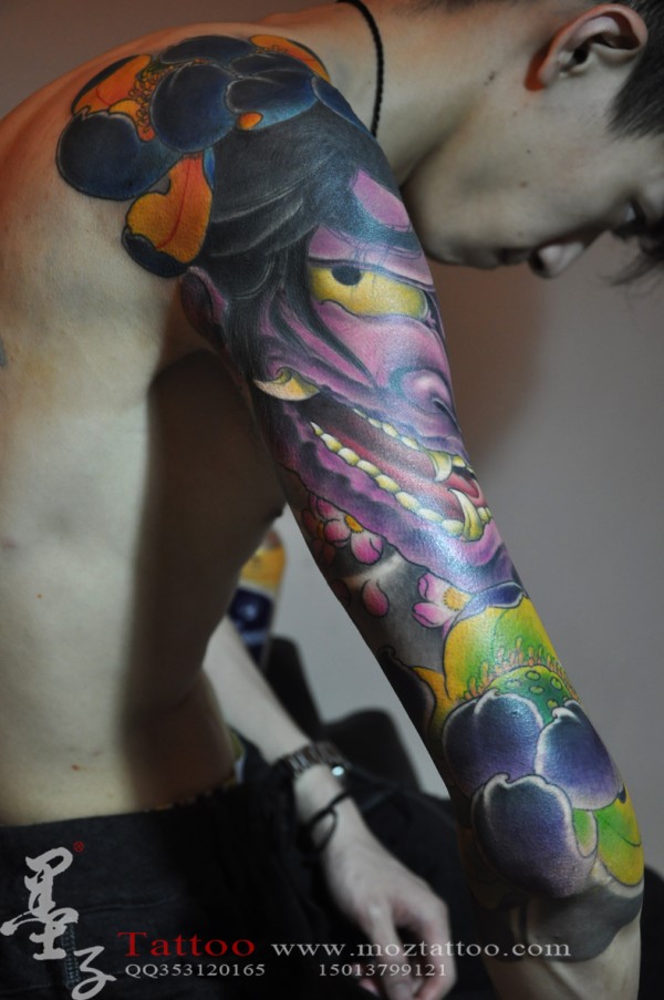 传统 般若 莲花 花臂 纹身_花臂纹身图案大全_纹身图吧