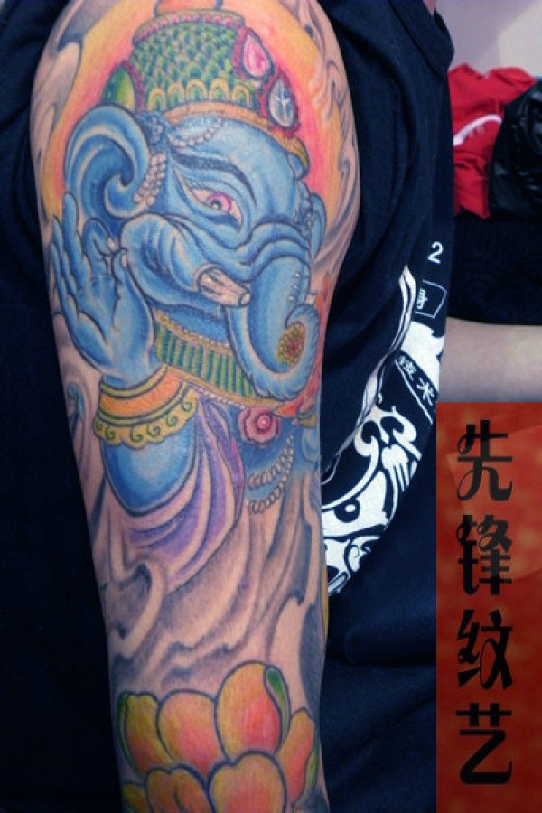彩色花臂,象神纹身,鱼纹身彩色作品_花臂纹身图案大全_纹身图吧