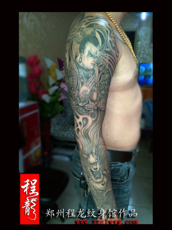 程龙纹身馆作品 【二郎神花臂】_花臂纹身图案大全_纹身图吧