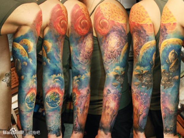 一款精美很帅的星空花臂纹身图案_花臂纹身图案大全_纹身图吧