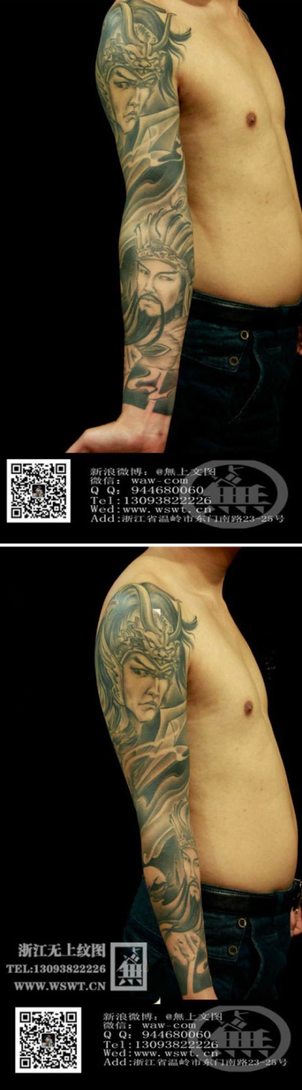 手臂超帅的花臂赵云诸葛亮纹身图案_花臂纹身图案大全_纹身图吧