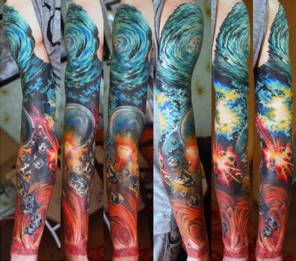 精美超酷的一款星空花臂纹身图案_花臂纹身图案大全_纹身图吧