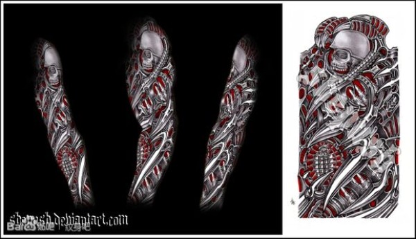很酷经典的手臂花臂机械纹身手稿_花臂纹身图案大全_纹身图吧