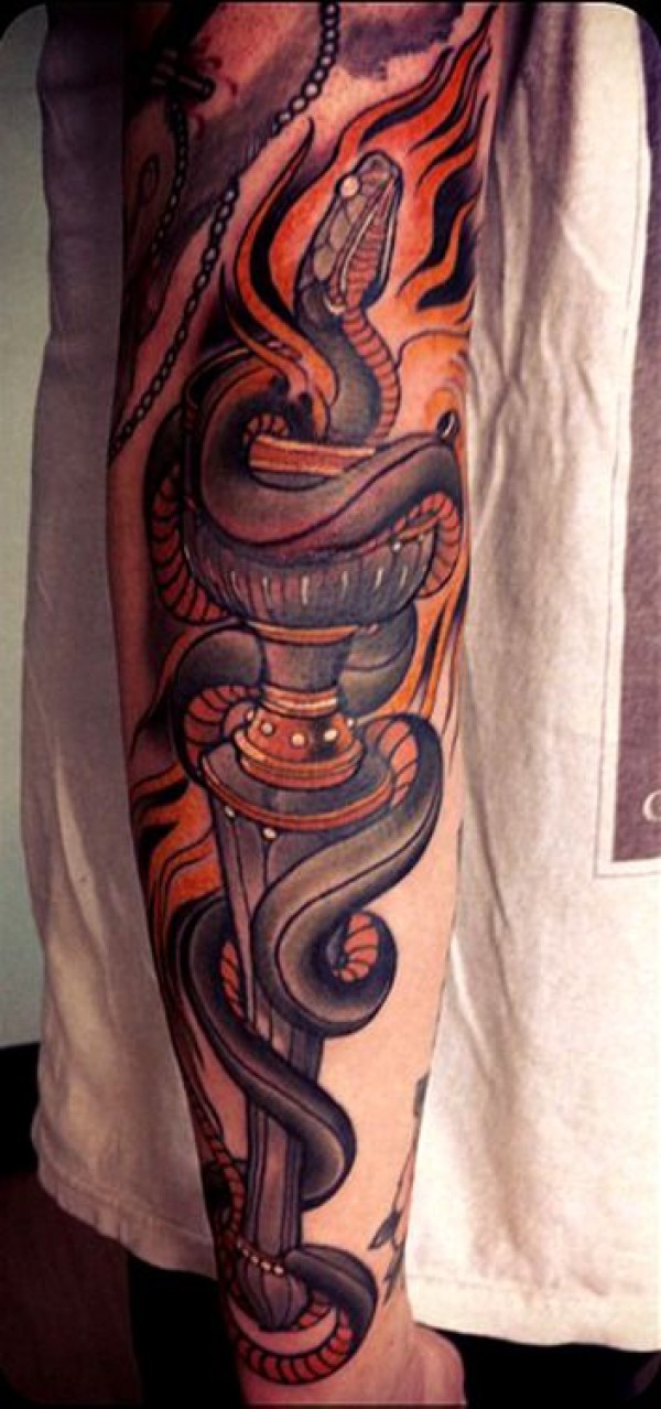 一款经典超酷的花臂蛇纹身图案_花臂纹身图案大全_纹身图吧