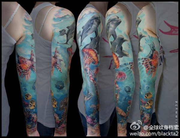 一款漂亮精美的花臂海洋世界纹身图案_花臂纹身图案大全_纹身图吧
