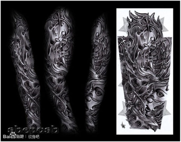 创意霸气花臂复古纹身图案图片_花臂纹身图案大全_纹身图吧