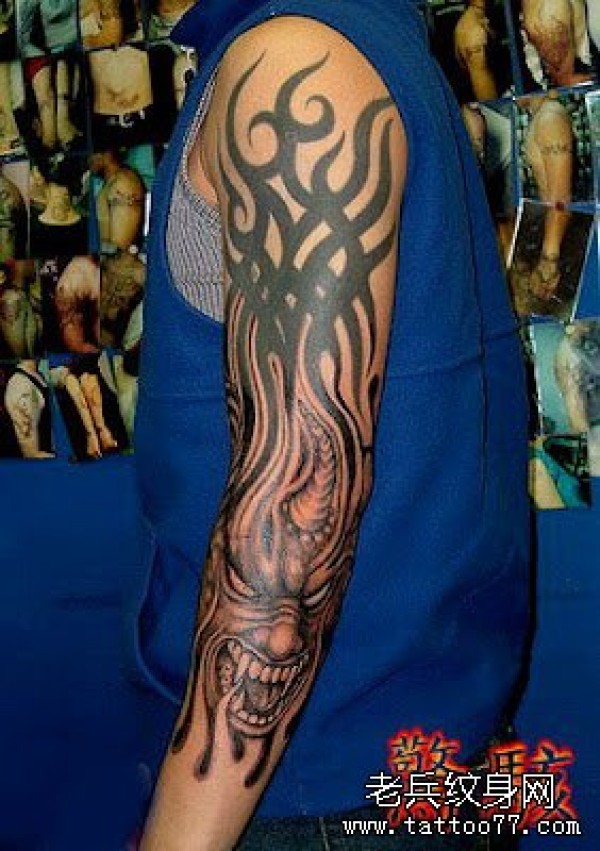 推荐一款霸气的图腾花臂纹身图案_花臂纹身图案大全_纹身图吧