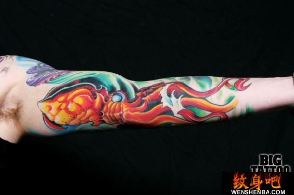 欧美章鱼花臂纹身_花臂纹身图案大全_纹身图吧