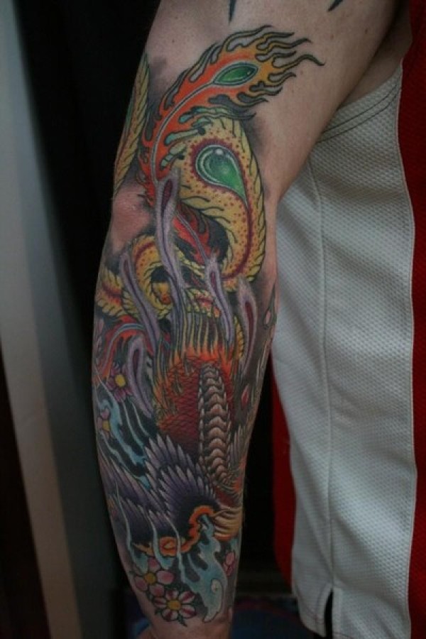 彩色凤凰花臂_花臂纹身图案大全_纹身图吧