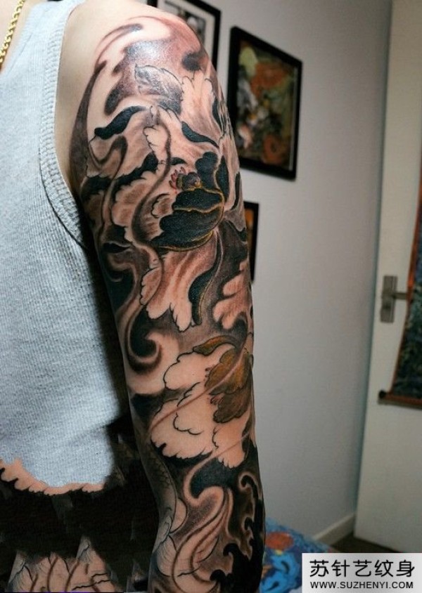 花臂牡丹刺青图案_花臂纹身图案大全_纹身图吧