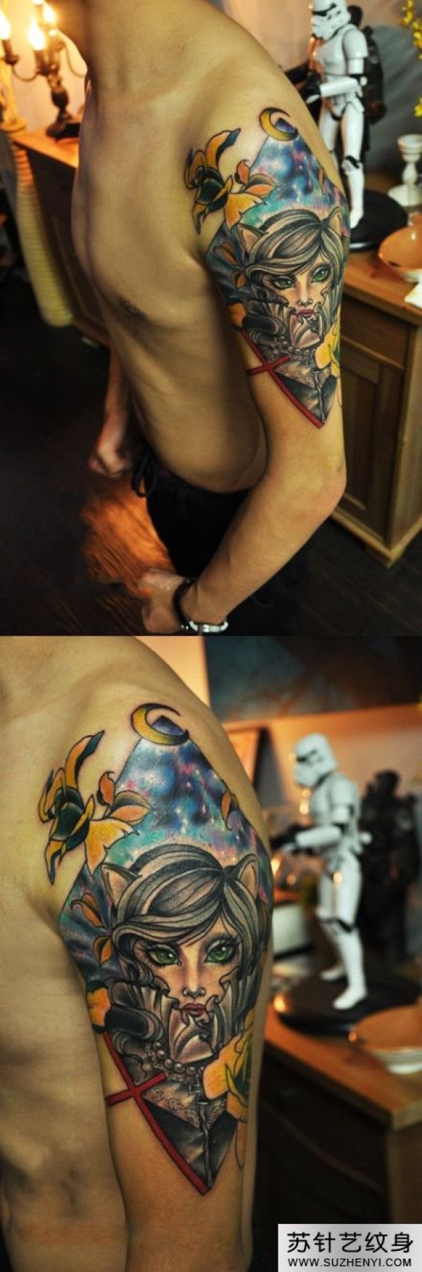 星空猫女花臂纹身_花臂纹身图案大全_纹身图吧