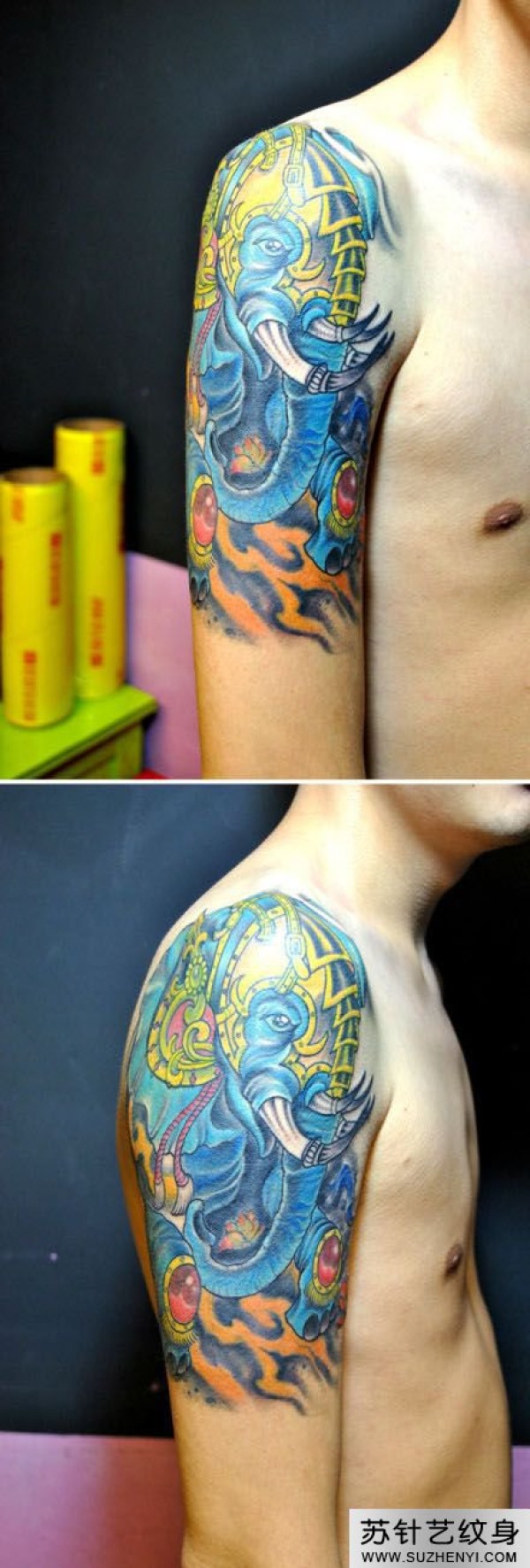 战象花臂纹身_花臂纹身图案大全_纹身图吧