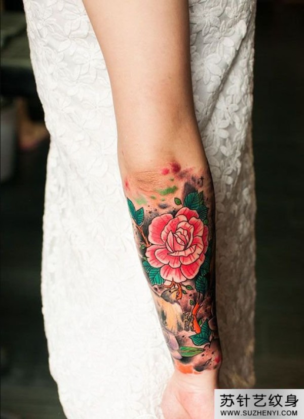 水墨小花臂玫瑰纹身图案图片_花臂纹身图案大全_纹身图吧