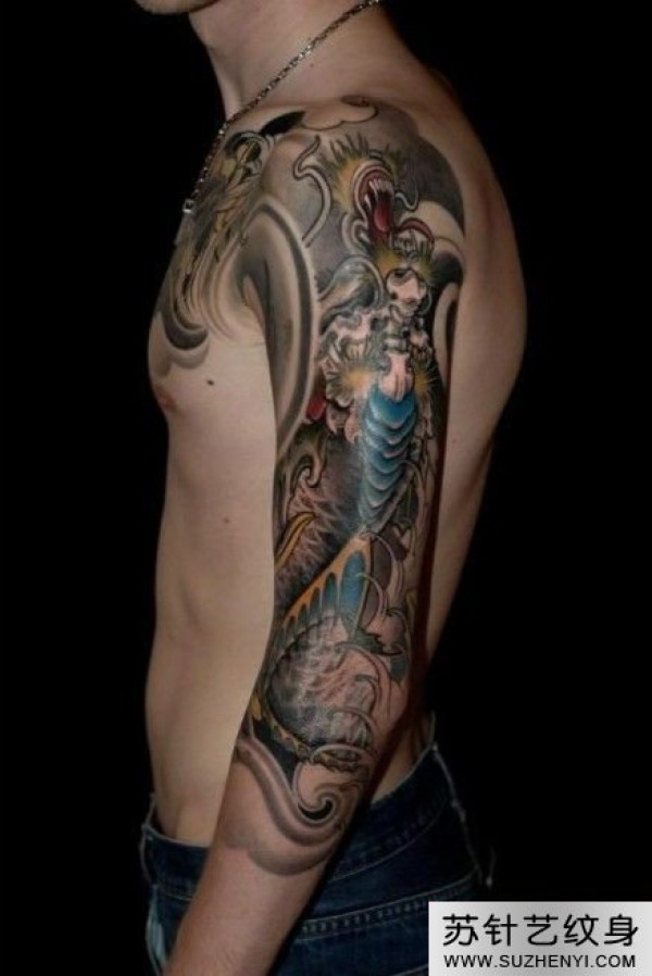 创意霸气花臂复古纹身图案图片_花臂纹身图案大全_纹身图吧