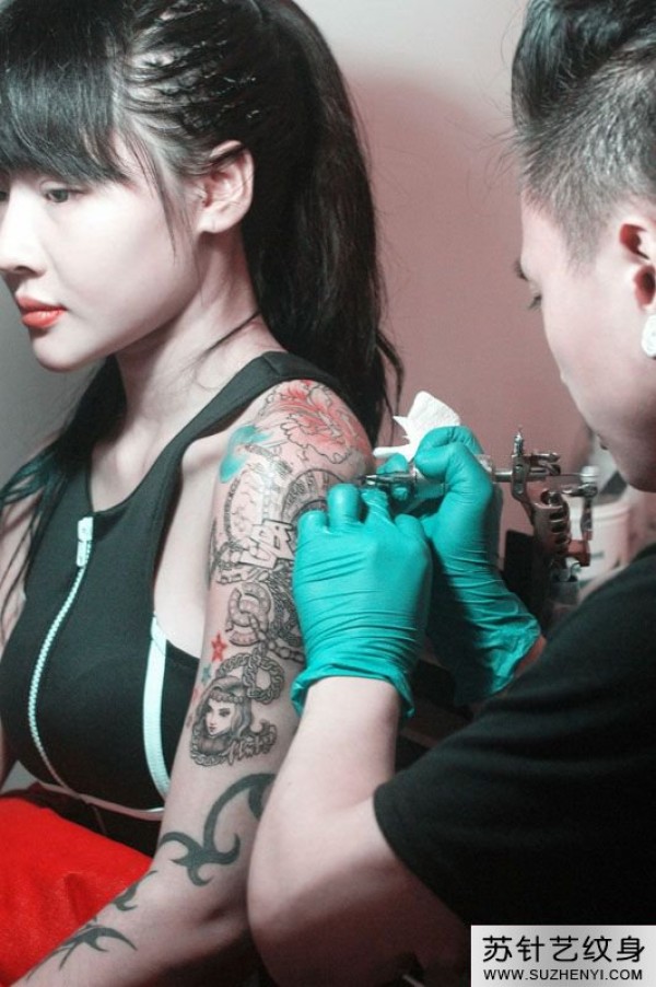 美女个性花臂纹身_花臂纹身图案大全_纹身图吧