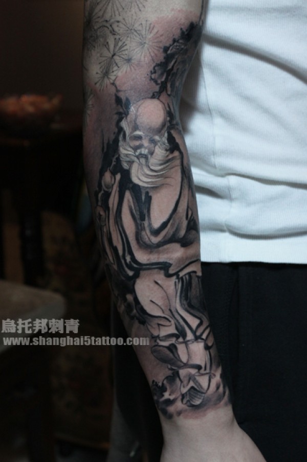 水墨花臂(局部)_花臂纹身图案大全_纹身图吧