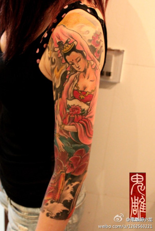 传统观音 七分花臂_花臂纹身图案大全_纹身图吧