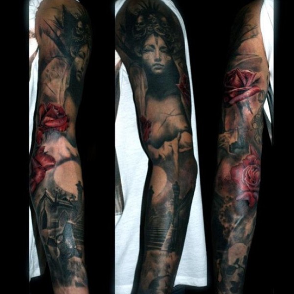 创意霸气花臂复古纹身图案图片_花臂纹身图案大全_纹身图吧