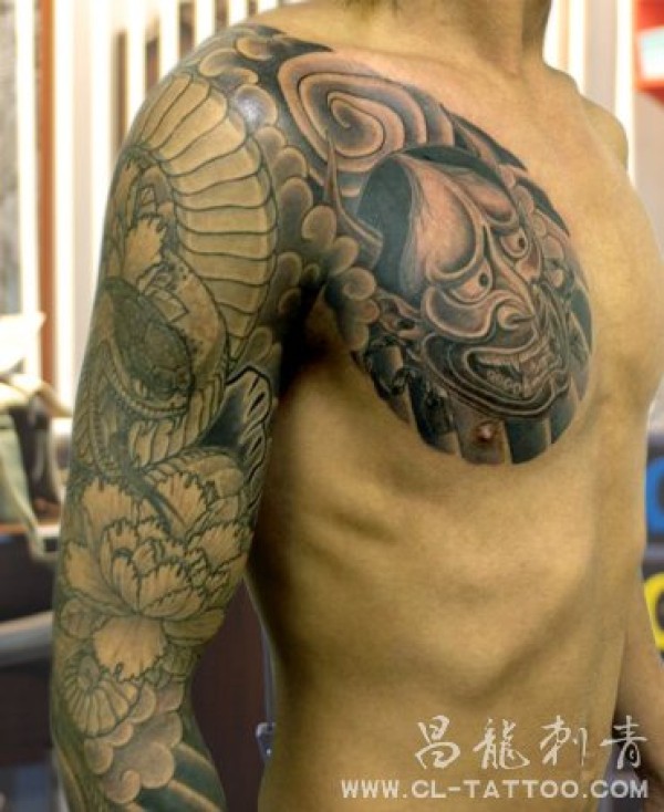 日式半胛花臂_男士大图_花臂纹身图案大全_纹身图吧