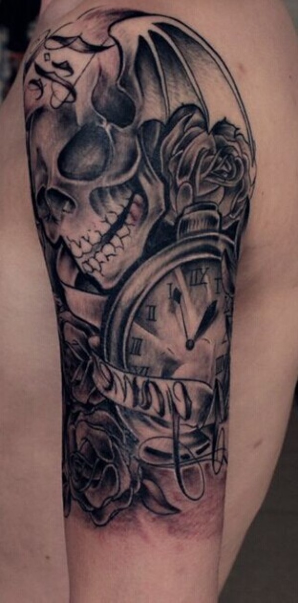 手臂骷髅面花臂纹身_花臂纹身图案大全_纹身图吧