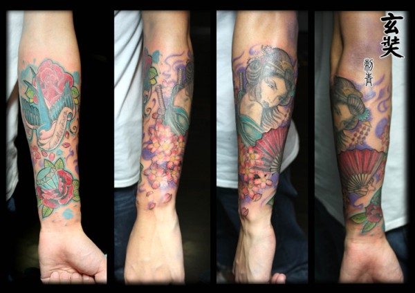 抽烟艺妓个性花臂纹身图案图片_花臂纹身图案大全_纹身图吧