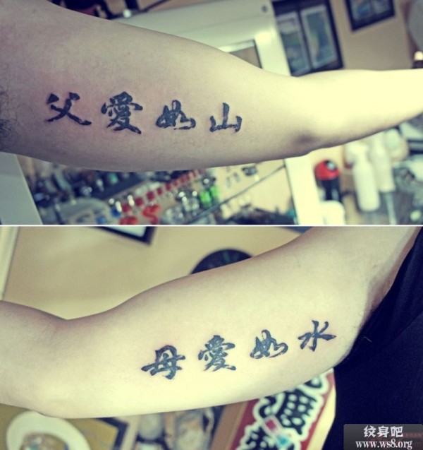 手臂汉字感恩父母刺青_汉字纹身图案大全_纹身图吧