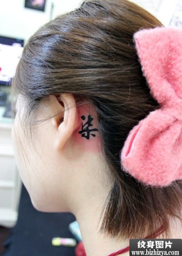 耳后汉字“柒”纹身图案图片_汉字纹身图案大全_纹身图吧