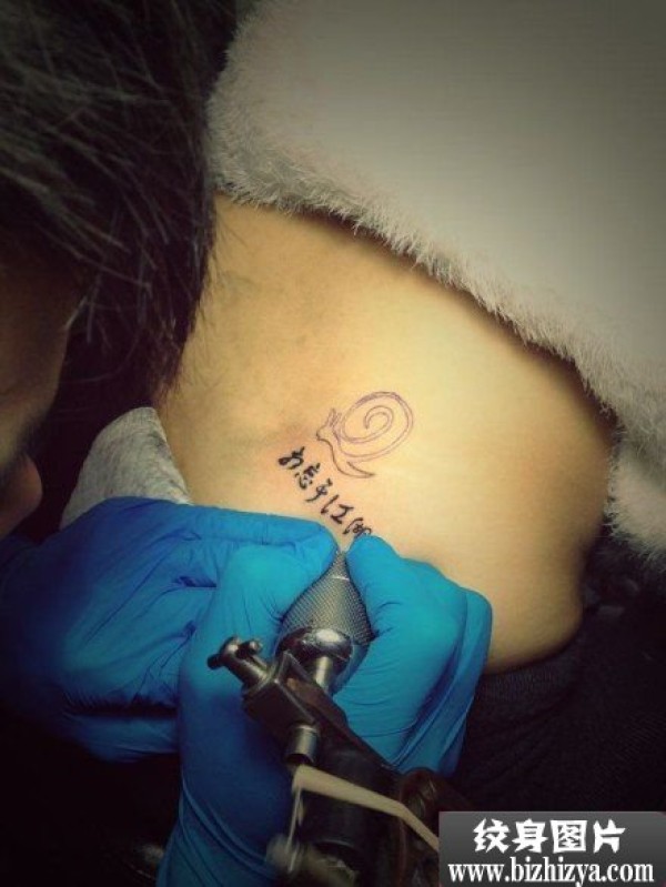 后腰蜗牛与汉字个性纹身过程图案图片_汉字纹身图案大全_纹身图吧