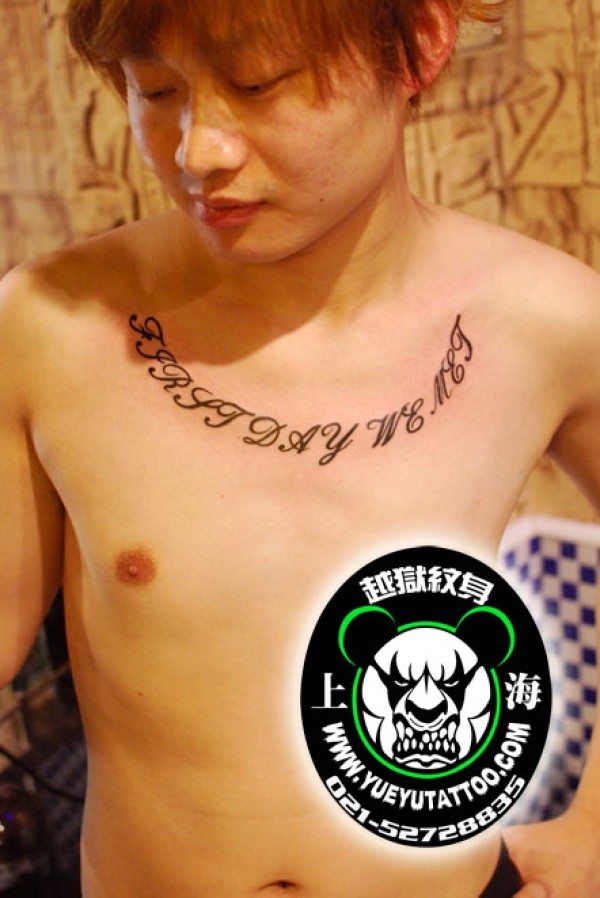 胸部弧形字体纹身图案上海越狱纹身店作品_汉字纹身图案大全_纹身图吧