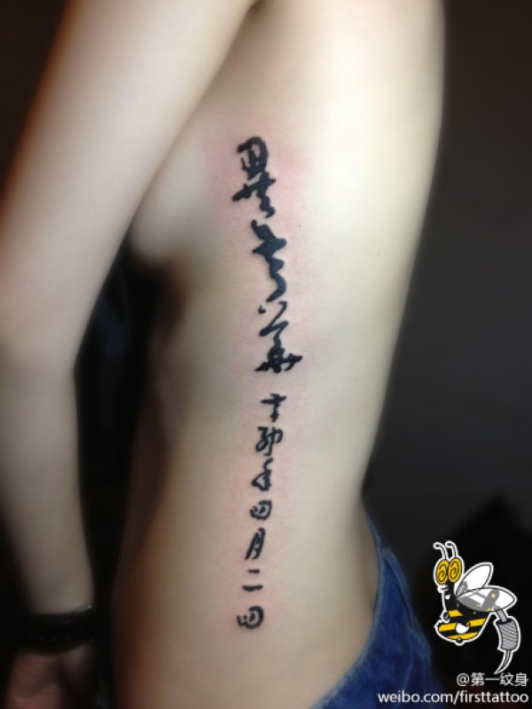 美女侧腰唯美潮流的汉字纹身图案_汉字纹身图案大全_纹身图吧