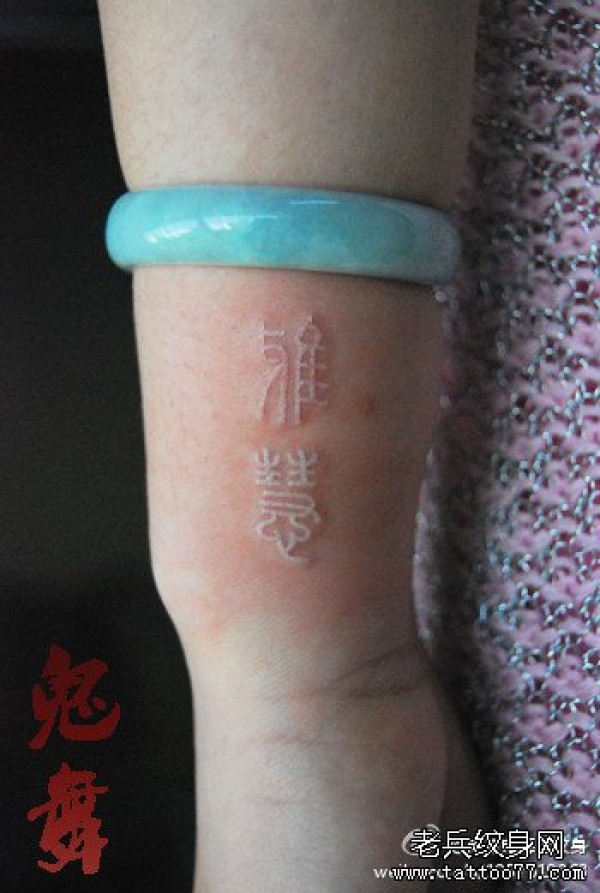 手臂一款时尚经典的白色汉字纹身图案_汉字纹身图案大全_纹身图吧