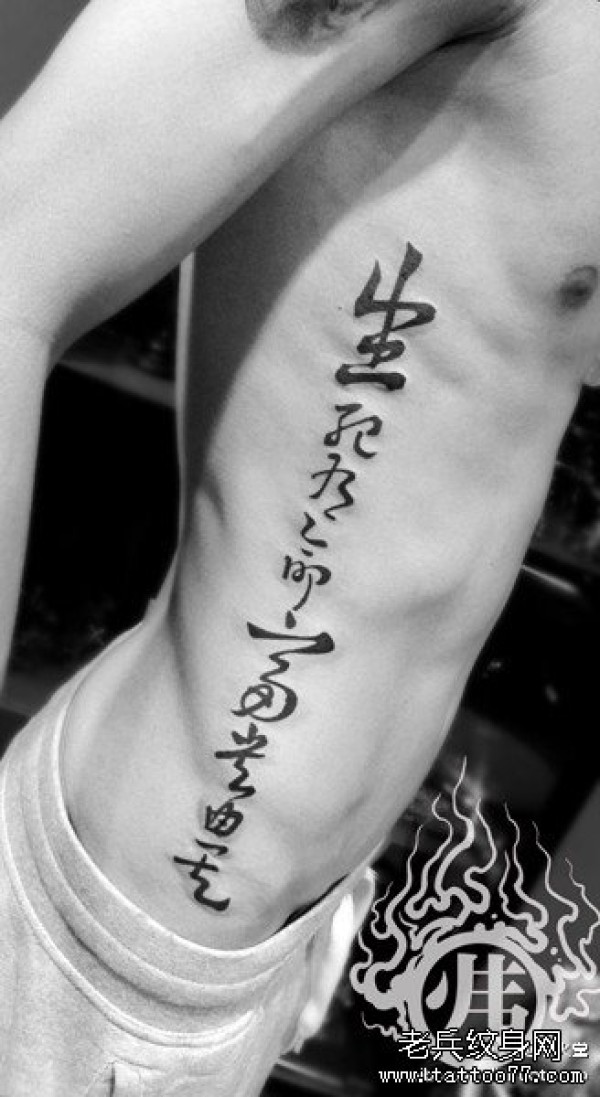 男人侧腰帅气超酷的仿贝克汉姆汉字纹身图案_汉字纹身图案大全_纹身图吧