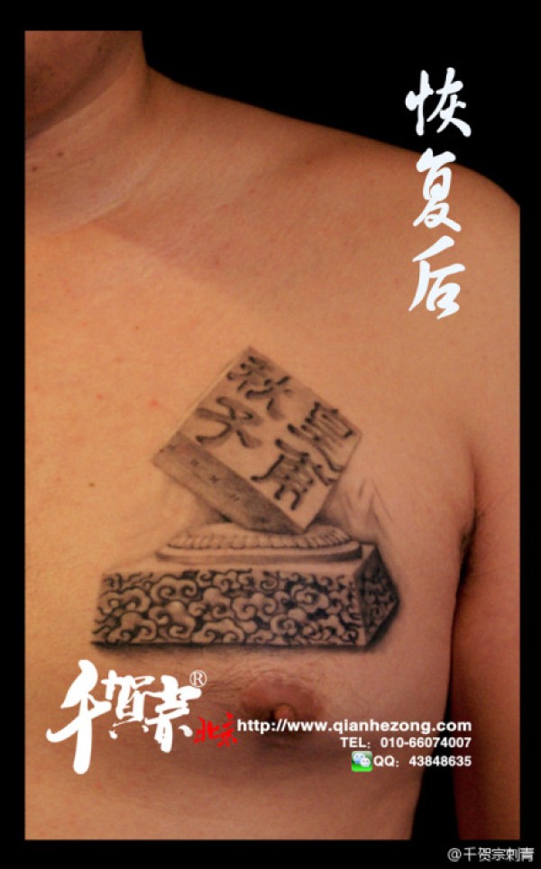男生前胸经典时尚的烙印汉字纹身图案_汉字纹身图案大全_纹身图吧