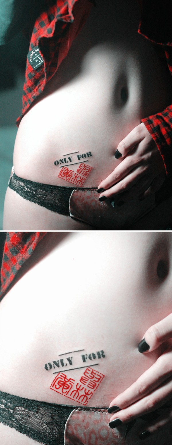 女生腹部潮流精美的印章汉字纹身图案_汉字纹身图案大全_纹身图吧