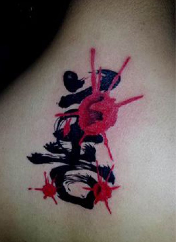 背部书法汉字与水滴纹身图案_汉字纹身图案大全_纹身图吧