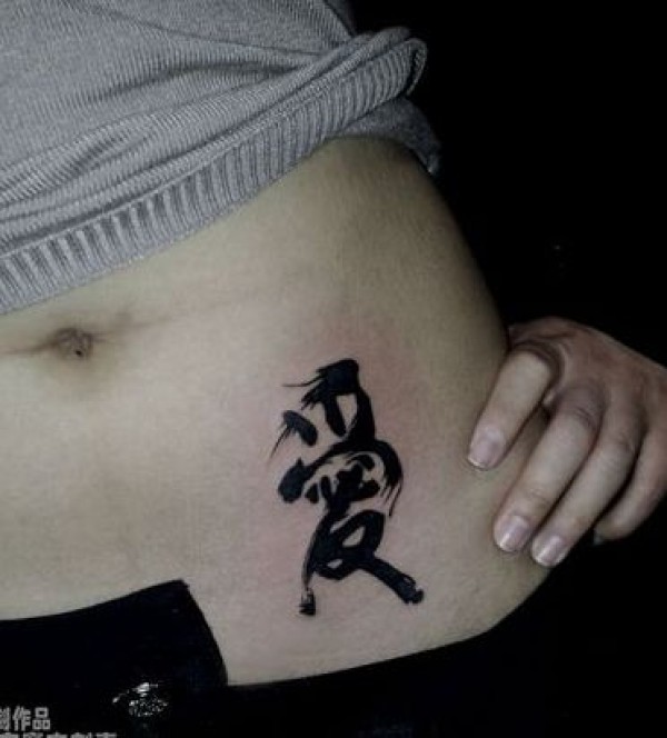 美女腹部书法汉字纹身图案_汉字纹身图案大全_纹身图吧