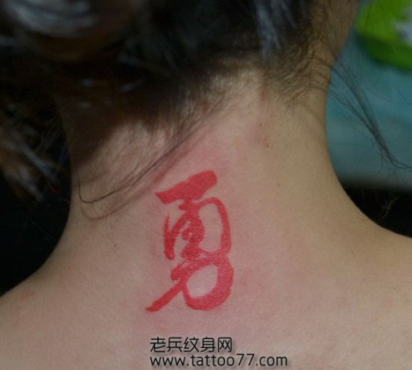 女孩子颈部一款彩色汉字纹身图案_汉字纹身图案大全_纹身图吧