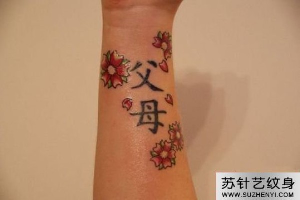手臂樱花汉字父母纹身_汉字纹身图案大全_纹身图吧